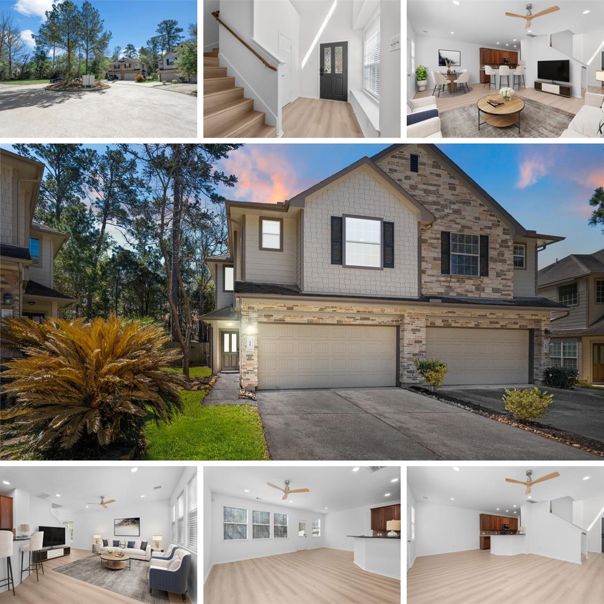 The heart of the home is the functional kitchen, complete with breakfast bar seating, a dedicated dining area, and the rare convenience of two separate pantries. Upstairs, you’ll find three spacious bedrooms and two full baths, along with a versatile flex space perfectly suited for a home office. The primary suite serves as a true sanctuary, featuring a large walk-in closet and an ensuite bath with double sinks, a soaking tub, and a separate shower. Step outside to a charming, fenced backyard equipped with a sprinkler system, offering immediate access to the scenic walking paths and world-class shopping, dining, and entertainment that define The Woodlands lifestyle.