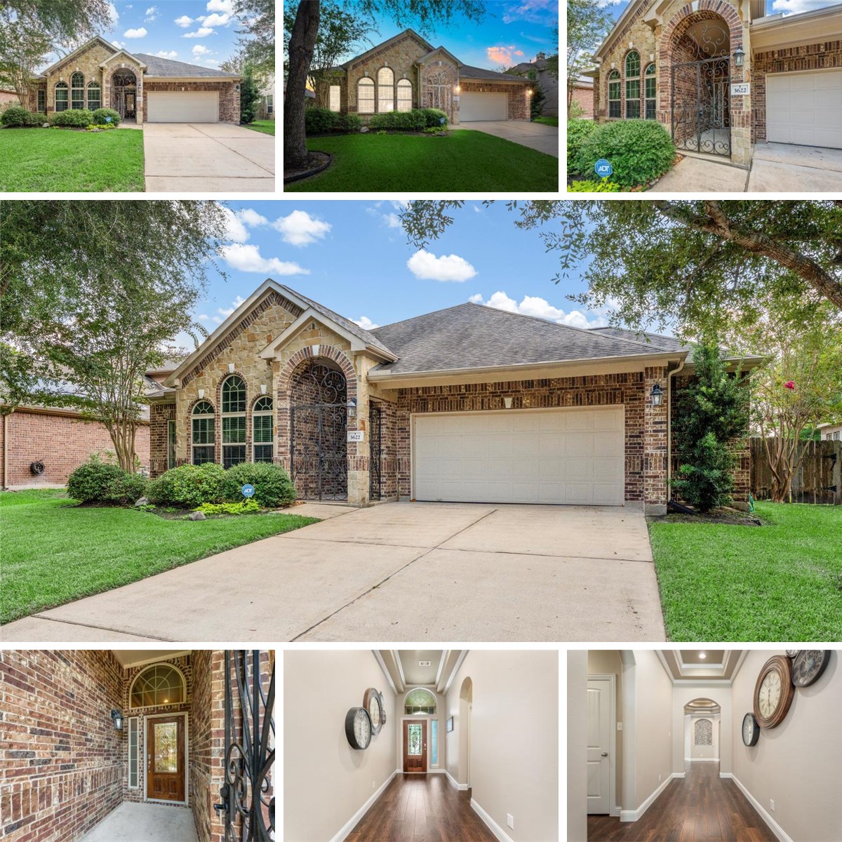 Charming 1 Story in Gated Harmony Creek – Nestled on a quiet, low-traffic street within walking distance to schools, this split floor plan home offers both comfort and style. Step outside to your private backyard oasis with an extended covered patio, sparkling pool with both chiller & heater, built-in fire pit, lush landscaping, and plumbing for an outdoor kitchen. Inside, engineered hardwoods and tile flow throughout—NO carpet! The open island kitchen with bar seating connects seamlessly to the sun-drenched family room with corner fireplace. Formal and casual dining areas make entertaining effortless. Elegant details include a rotunda tray ceiling, crown molding, neutral colors, and great storage. The oversized primary suite features a spa-inspired ensuite with double sinks, jetted tub, separate shower, and walk-in closet. Spacious secondary bedrooms and an oversized garage complete the home. Located in the sought-after Harmony community, offering resort-style amenities including 2 pools, splash pads, tennis, basketball, fitness center, clubhouse, parks, and walking trails. Easy access to 99, 45, Hardy Toll Rd, 59, The Woodlands, airport, shopping, dining, medical care, and entertainment.